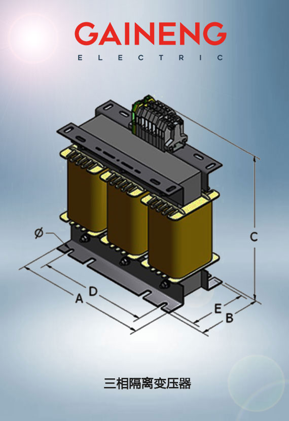 蓋能電氣設(shè)計的三相升壓變壓器或降壓變壓器可阻斷接地回路引起的干擾。帶靜電屏蔽的三相變壓器用于計算機或?qū)嶒炇覂x器等敏感設(shè)備的電源。
